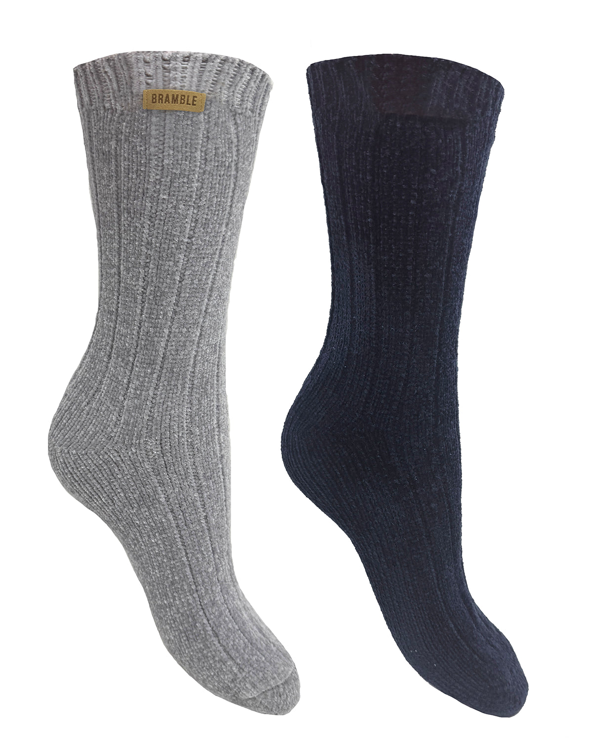 Bramble 1 Pair Womens Ribbed Chenille Bed Socks - Grey/Navy
