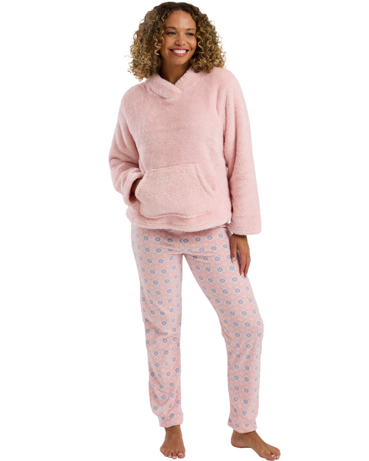 Wolfe and Hart Womens Pink Cosy Nights Sherpa Top with Fleece Pants Pyjamas