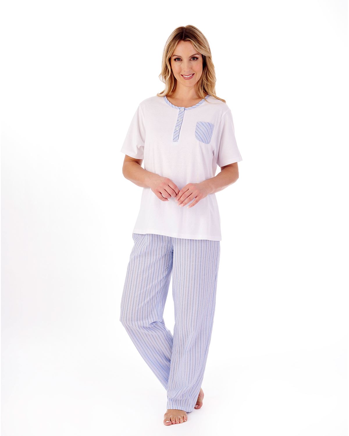 Slenderella Womens Classic Stripe Seersucker Woven Tailored Pyjama Set