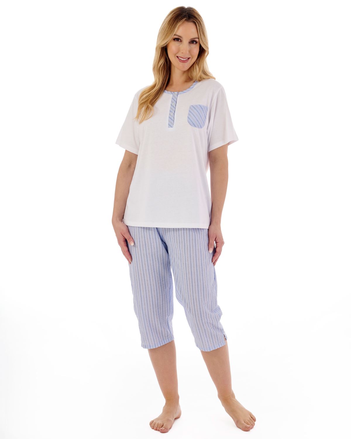 Slenderella Womens Classic Stripe Seersucker Woven Cropped Pyjama