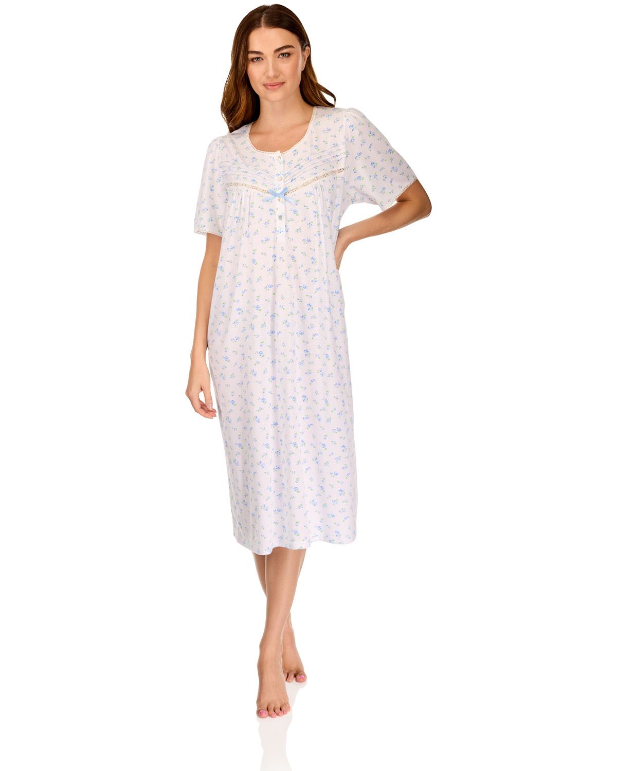 Lady Olga Womens Short Sleeve Floral Woven Nightie