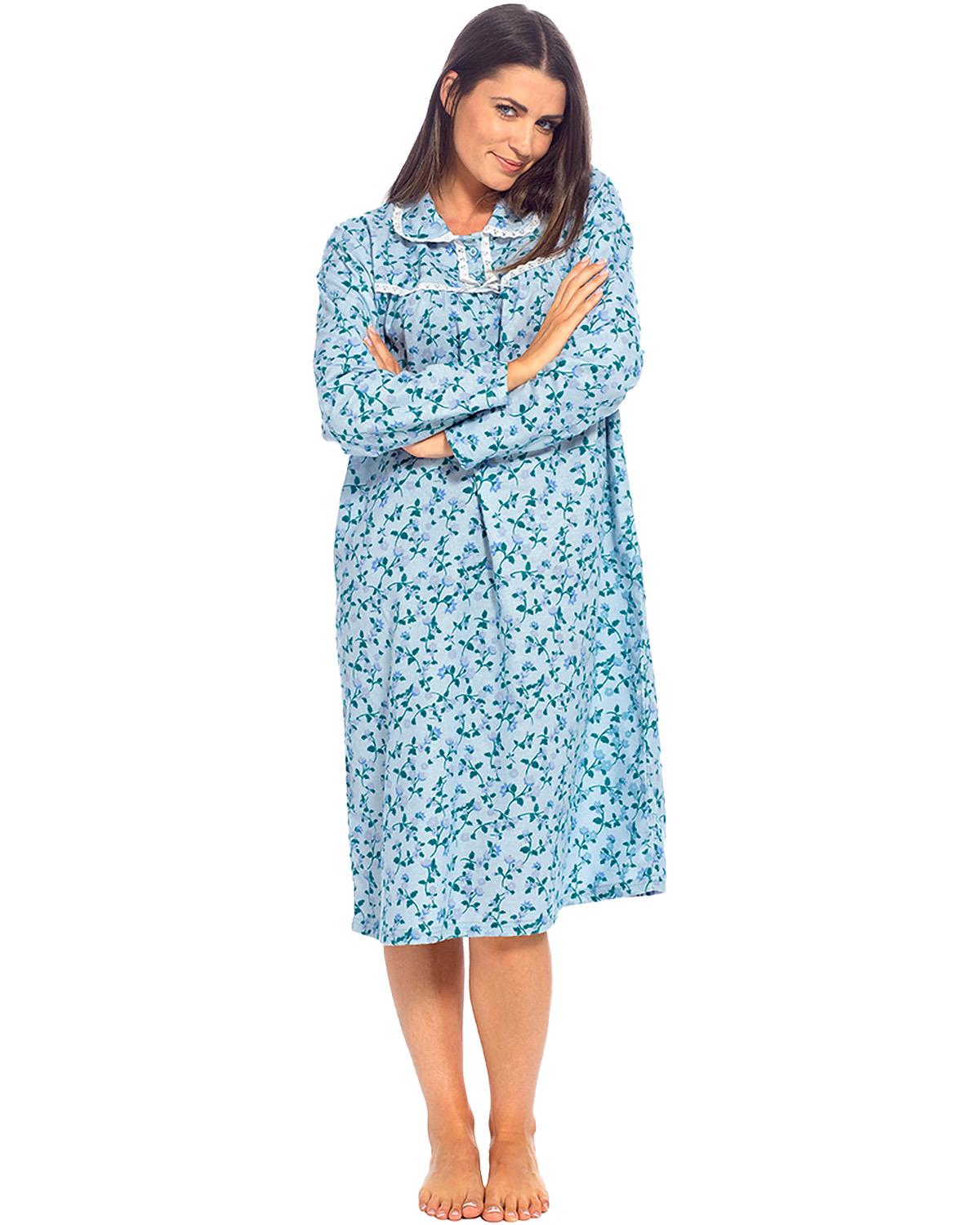 Cottonique Womens Long Sleeve Cotton Floral Nightdress