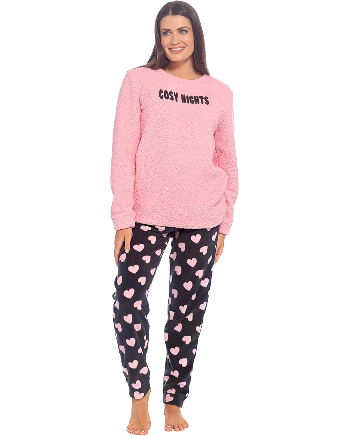 Womens Heart Print Fleece Pyjamas