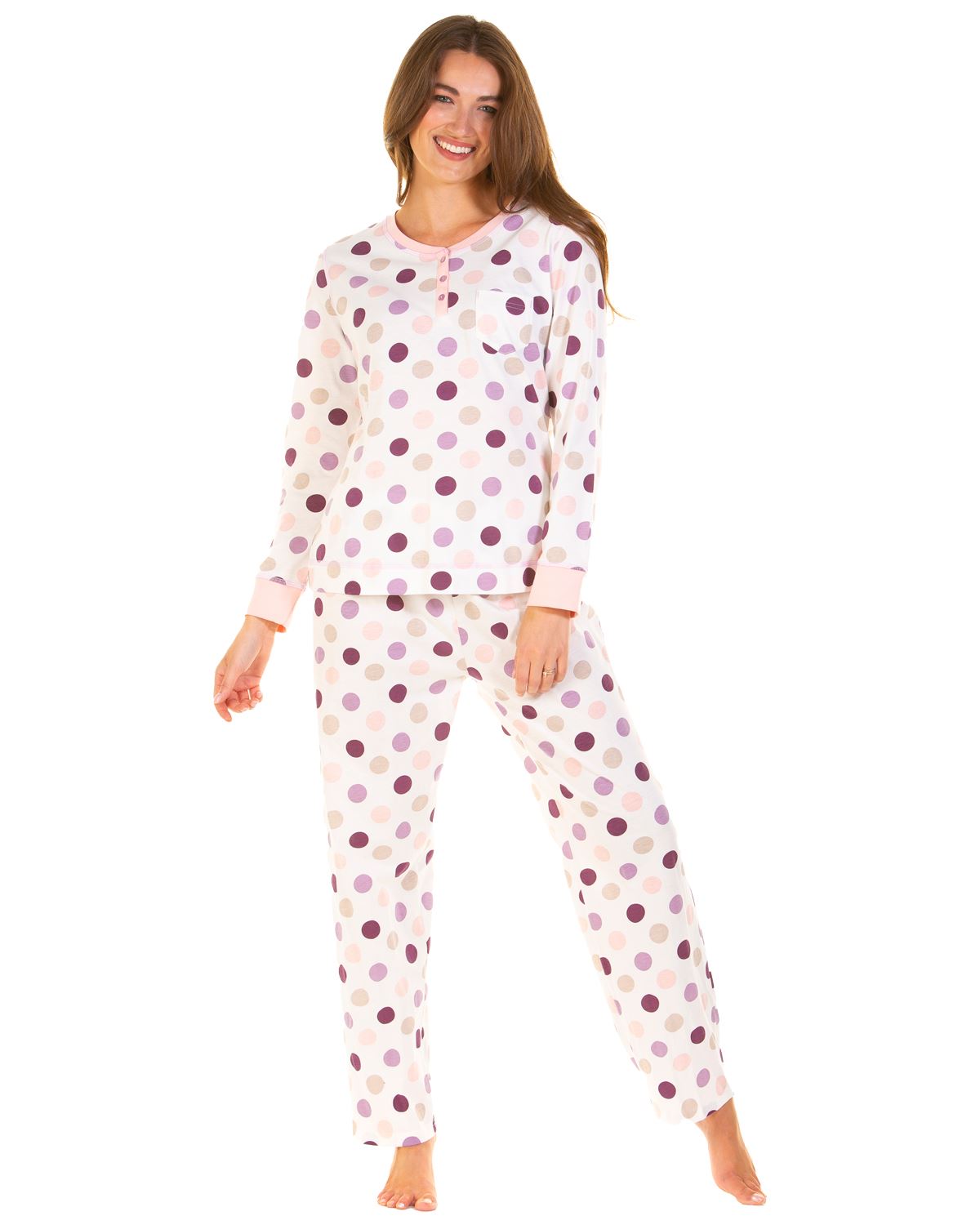 Sue Marks Womens Misty Dots Long Sleeve Button Pyjamas