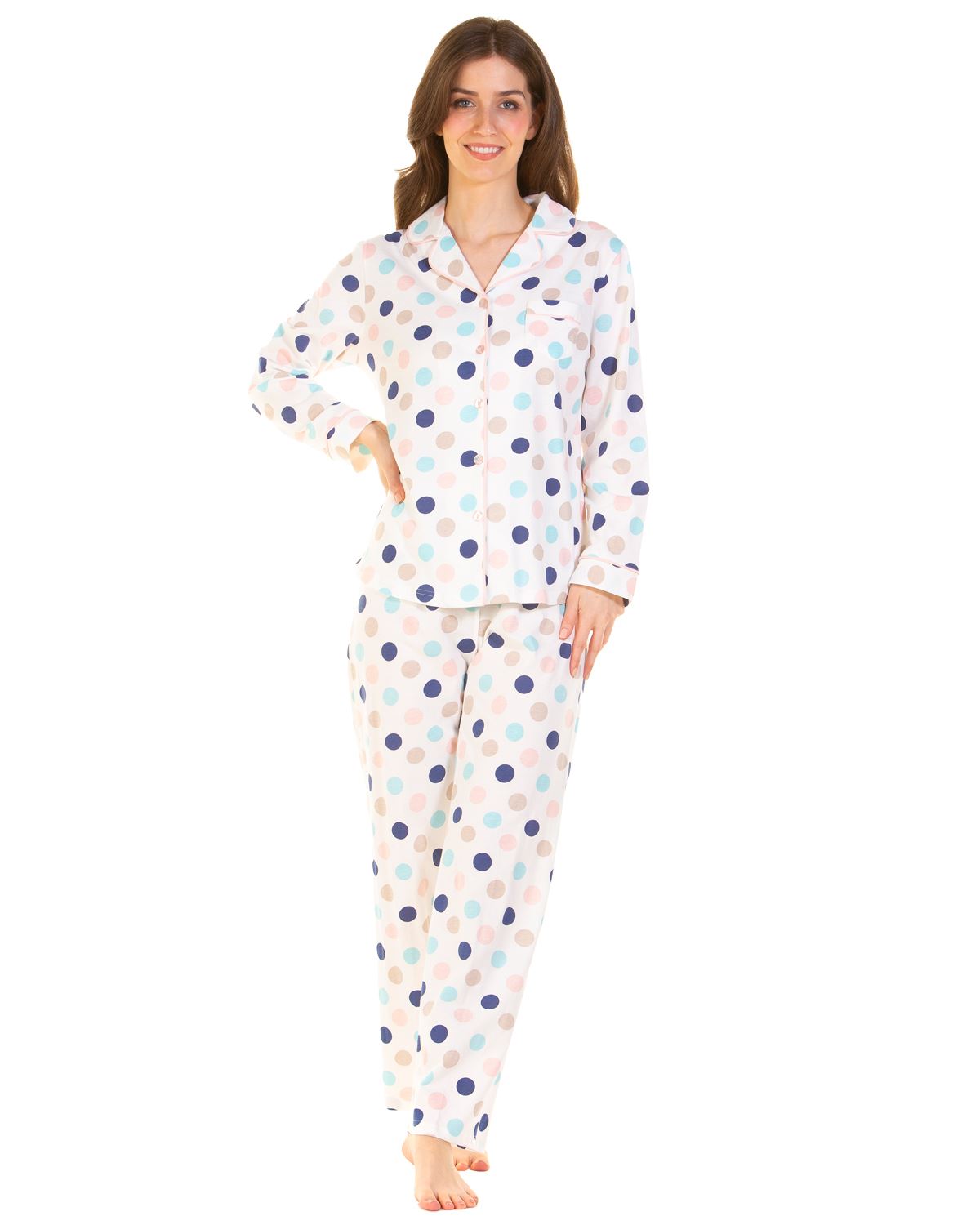 Sue Marks Womens Misty Dots Long Sleeve Button Pyjamas