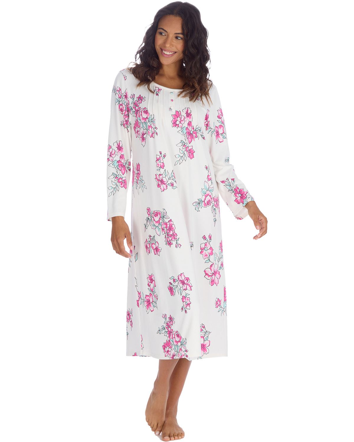 Countess Christie Womens Cuddleknit Floral Long Sleeve Nightdress