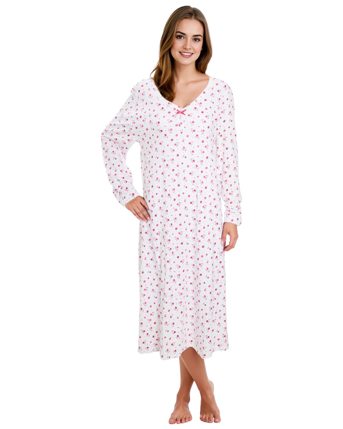 Cottonique Womens Long Sleeve Cotton Floral Nightdress